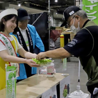 2025.09.03新着情報農産物ブドウ(農産物)露地シャインマスカットを東京大田市場でPR(25.9.2)