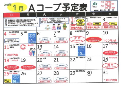 Aコープ予定表(2026.1月分)