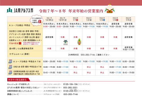 平素よりJA南アルプス市をご利用いただき誠にありがとうございます。