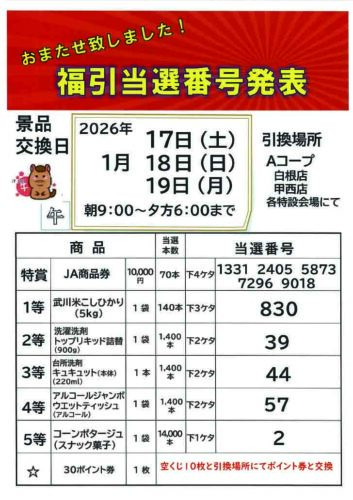 福引券の当選番号発表(26.1.9)