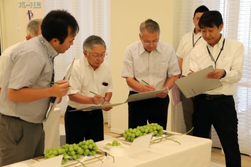 JA全農やまなしは9月18日、ベルクラシック甲府にてシャインマスカットの品評会を開きました。