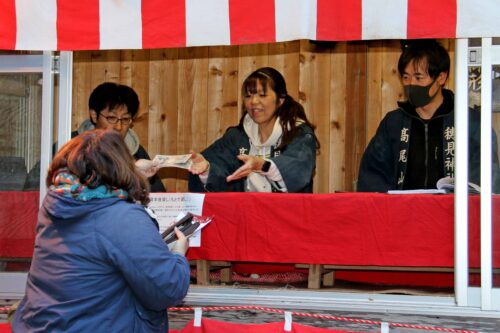 2千円は100万円、2万円は1千万円と金額を大きく言うのが習わしで、JA職員の景気の良い声が境内に響いていました。