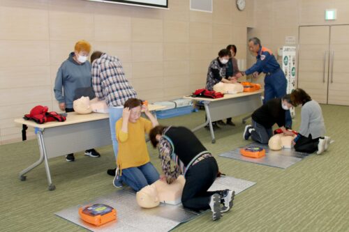 女性大学で応急手当について学ぶ(25.11.21) 2025.11.28 人工呼吸について学ぶ学生 女性大学は11月21日、南アルプス市消防本部にて、急病人の応急手当について講義を受けました。 消防署員から人工呼吸の方法やAEDの使い方を学びました。