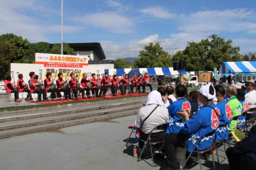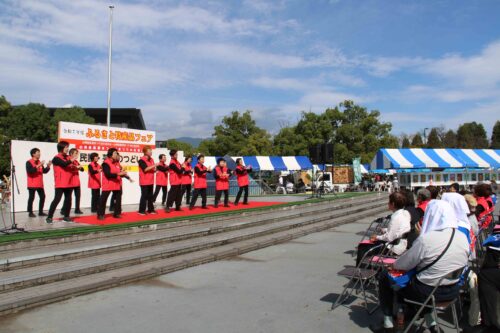 山梨県農業まつりで女性部が発表(25.10.18) 2025.10.25 ステージでスコップ三味線を披露するメンバー 手話コーラスを披露するメンバー 10月18日に小瀬スポーツ公園で行われた山梨県農業まつりにて、女性部のスコップ三味線グループと手話コーラスグループが演奏を披露しました。