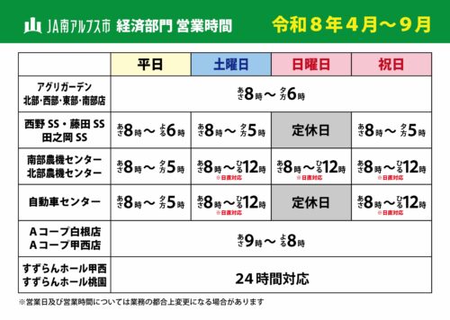 日頃よりJA南アルプス市をご利用いただき誠にありがとうございます。